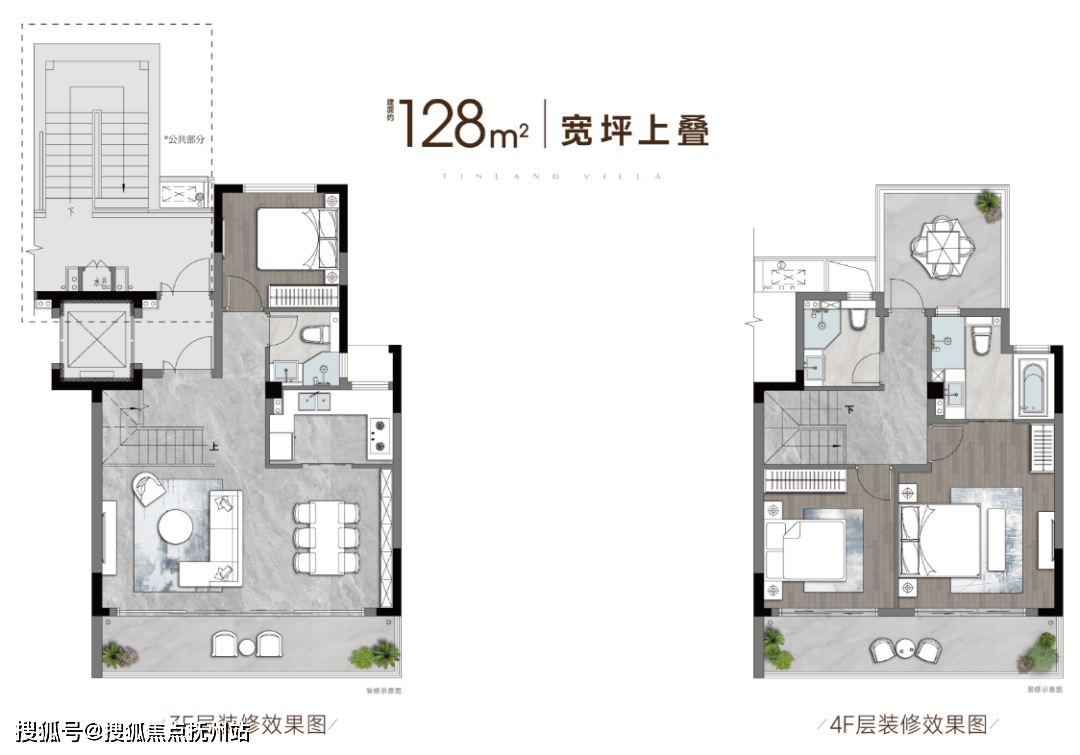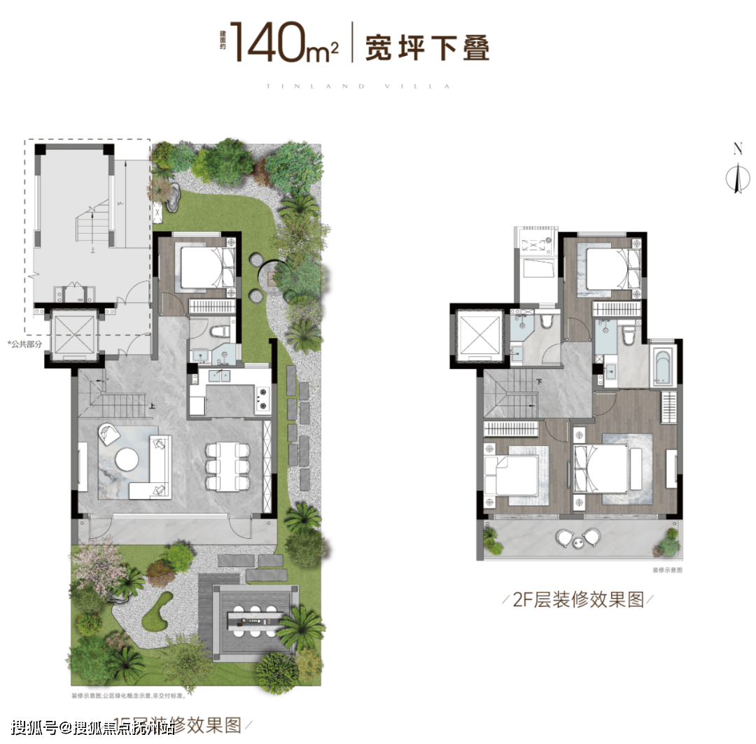 建面约128-140㎡的创新小面积叠墅,摒弃常见的“中叠”,只做纯粹的4层上下叠。独立入户,互不干扰。下叠拥有270°三面围合庭院,宅景比超过1:1,让庭院成为客厅的自然延伸;上叠则独创约45㎡的星空露台与空中花园,以360°环幕视野,实现垂直墅居的浪漫想象。
