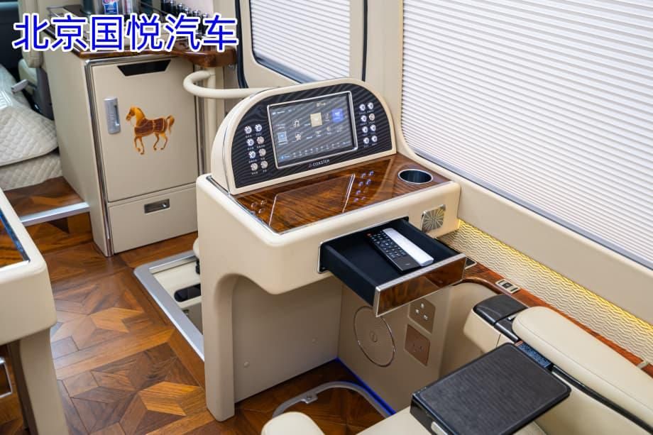 丰田考斯特 12 座豪华版,以米色内饰的温馨氛围、4 张旗舰座椅的极致舒适、通舱无隔断的开放空间、双电视与电动办公桌的实用配置,成为注重协作交流的中大型商务接待理想之选。它不仅是一款交通工具,更是企业开放文化的展示窗口、团队协作的移动平台、客户接待的温馨空间。
