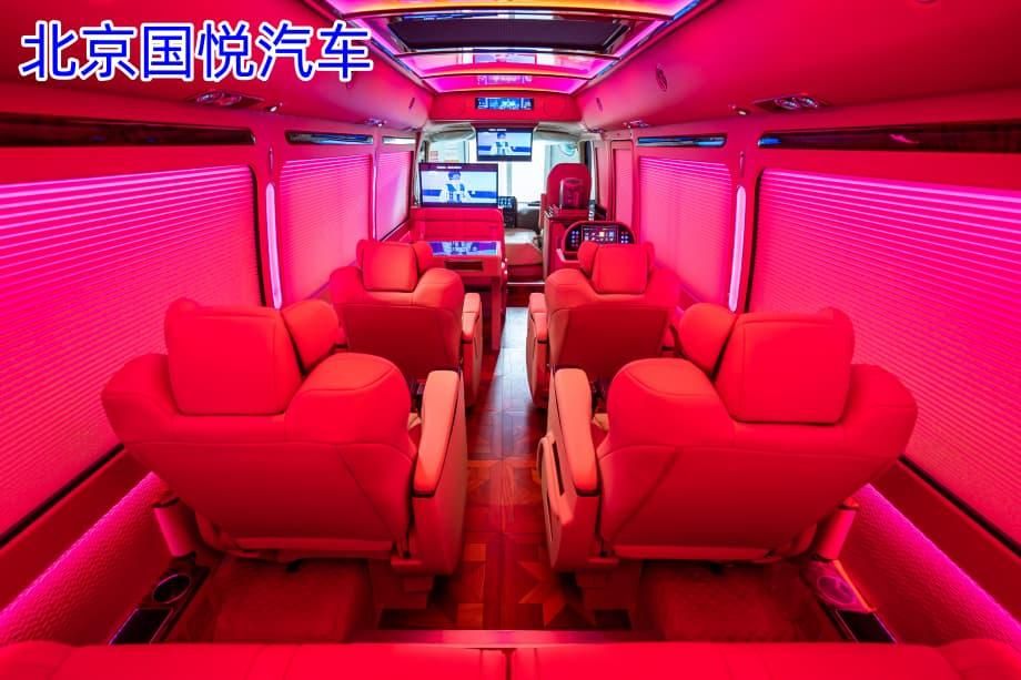 ,多组 LED 光源呈矩阵式排列,光线经过柔光处理后均匀洒布车内,既满足办公照明需求,又不会产生刺眼眩光。灯光支持亮度与色温调节,白天可调至冷白光提升专注度,夜晚切换为暖黄光营造温馨氛围,让车内光线随场景灵活变化。通舱设计配合智能灯光系统,让 12 座空间既显宽敞又不失私密,完美平衡开放交流与专注办公的双重需求。